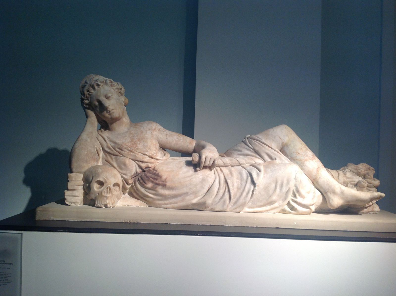 Une jolie sculpture destinée à orner un tombeau et ou j'ai pu découvrir une magnifique tête de mort. Vous savez quelle passion j'ai pour les têtes de mort et autres représentations macabres ;-) .